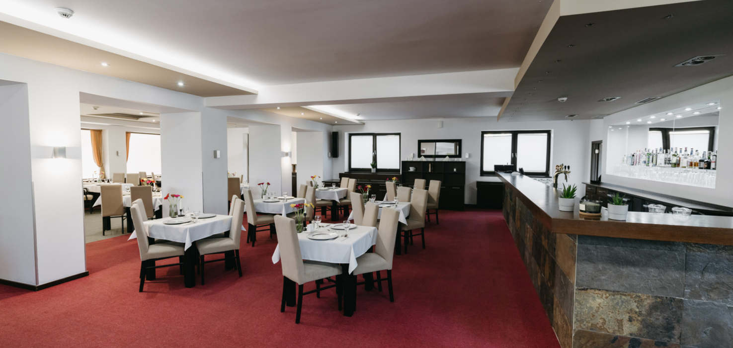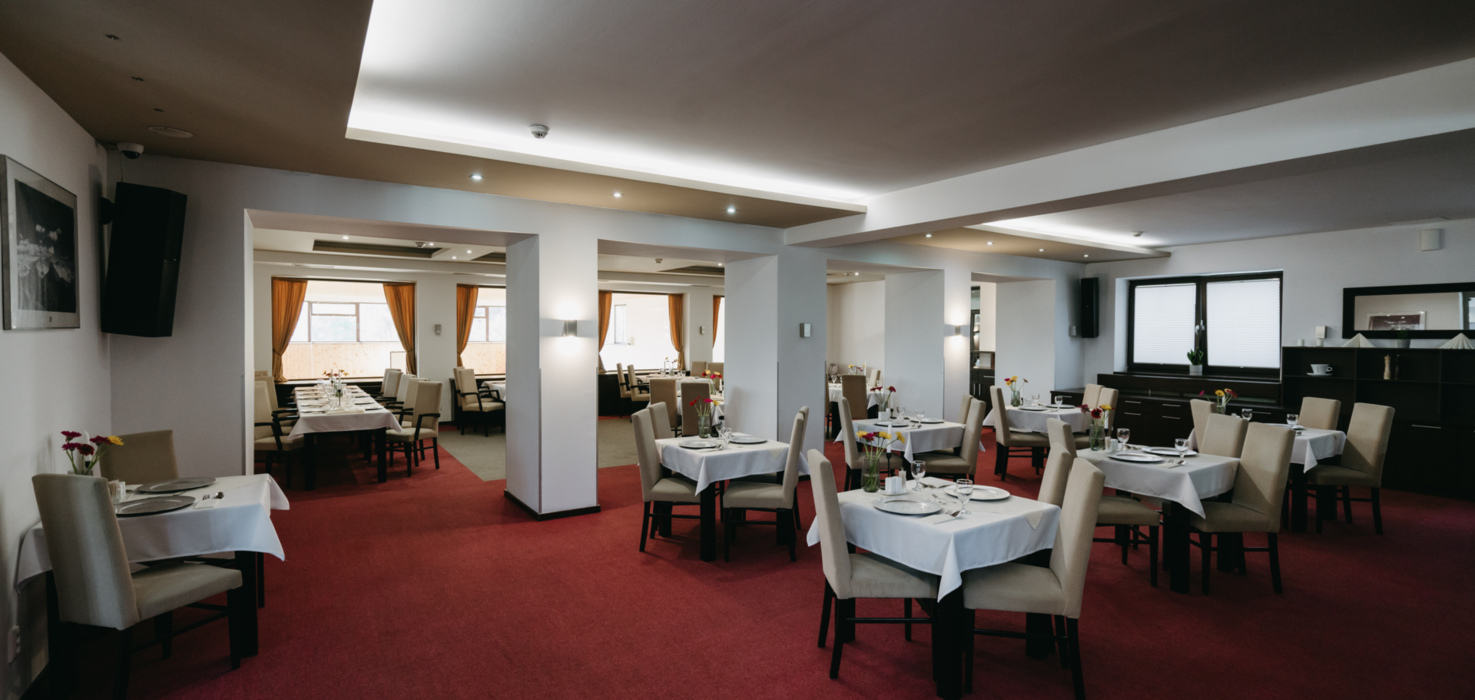 Kapacita 100 miest, raňajkové bufety, obedy a večere. Vhodné na firemné eventy, rodinné oslavy a sledovanie športových prenosov.