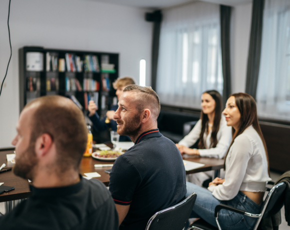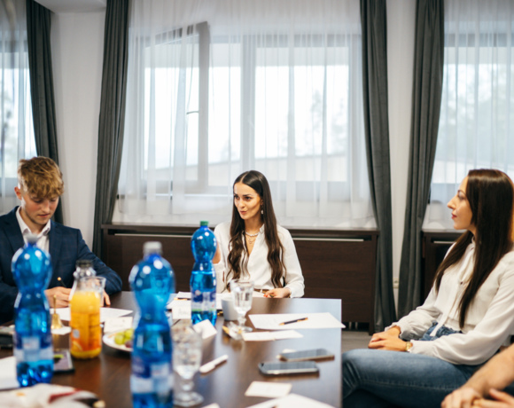 Malá mítingová miestnosť pre 30 osôb, vhodná na stretnutia, porady, prezentácie, školenia, biznis diskusie a rozhovory.